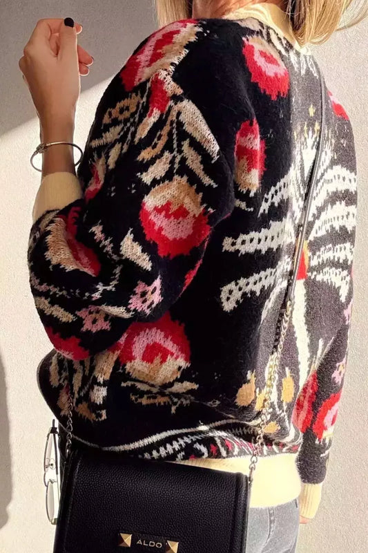 Cherry Pattern Tie-Front Oversized Cardigan